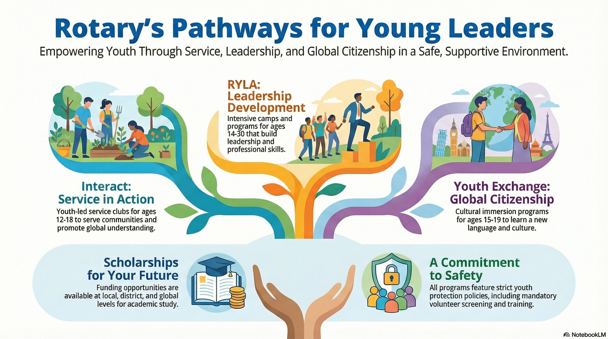 - Rotary Youth Exchange – Offering local students the opportunity to study abroad and build cross-cultural understanding.